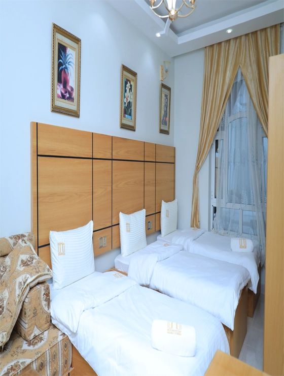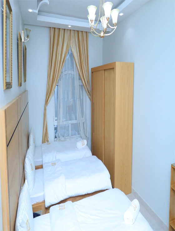 تتكون الشقة من غرفة عائلي وغرفة 3 اسِرة ومطبخ متكامل وحمام وايضاً ديوان فاخر مع حمام
