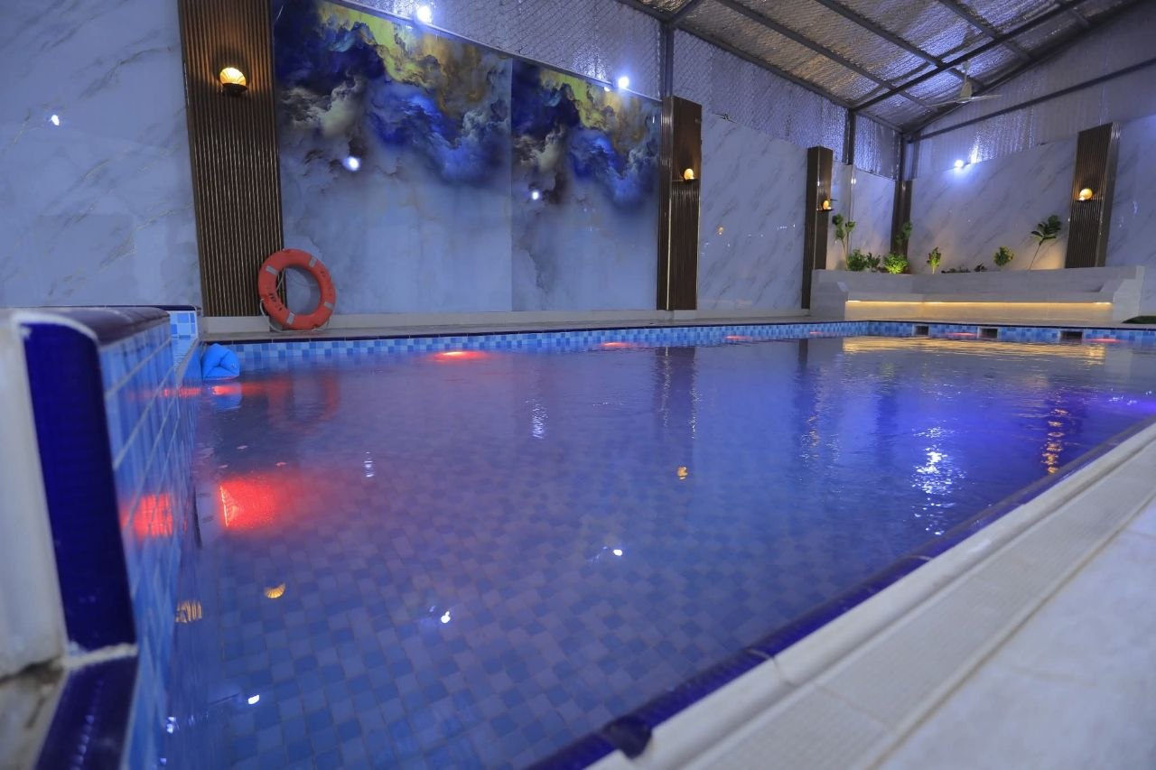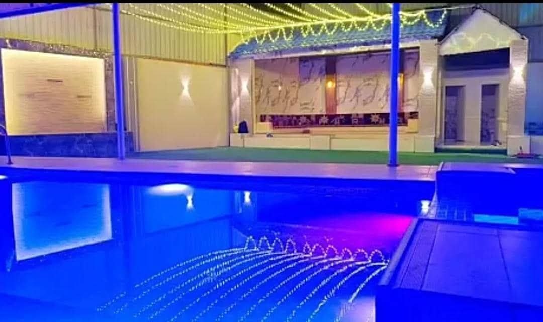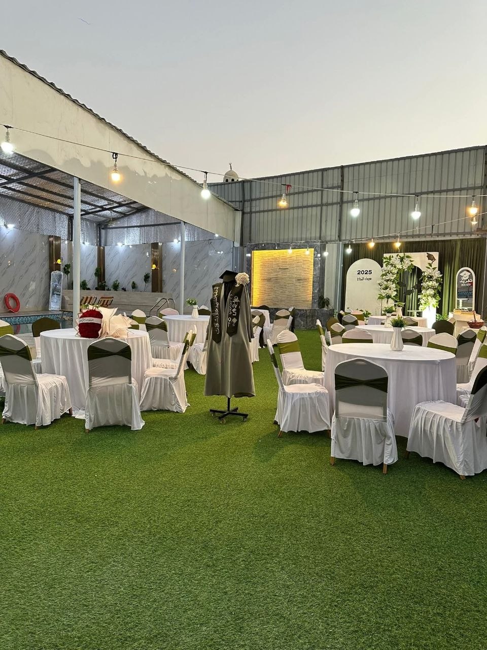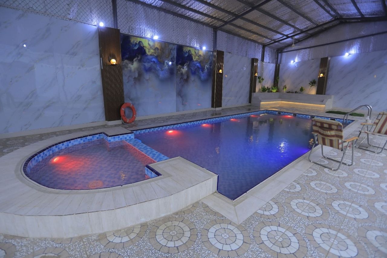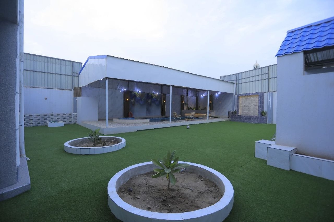 يوفر الشاليه ديوان كبير وصالات و مسبح للاطفال بمساحة خارجيه مغطا ب العشب مع الالعاب