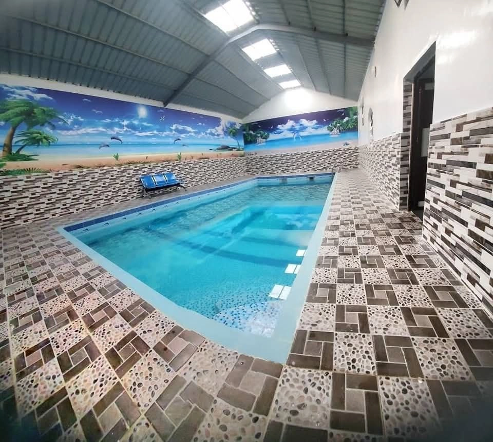 مسبح فخم ونظيف بطول 36 2m وعمق مدرج 80 سم الى 150 سم